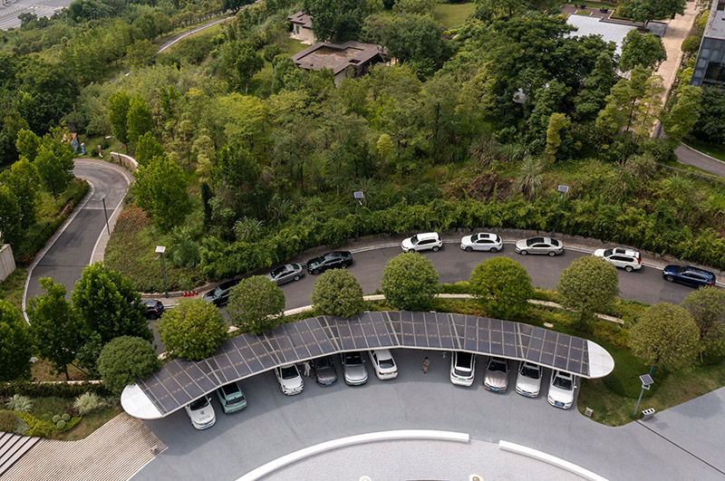 2022年6月16日拍摄的已建成投用的重庆首座光伏充电发用一体充电站(无人机照片)。新华社记者 刘潺 摄