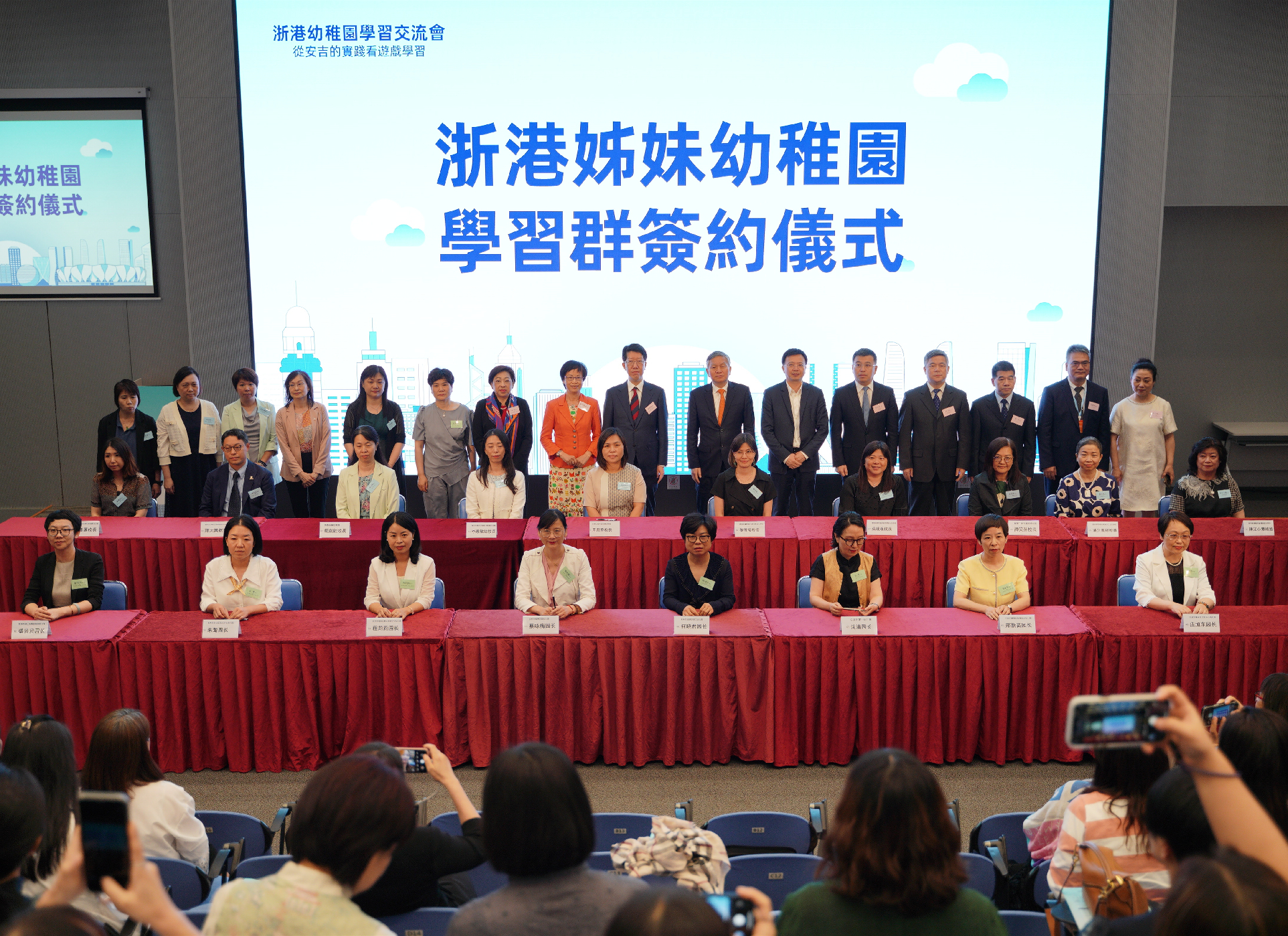 香港中联办教育科技部、香港特区政府教育局负责人,浙江省教育厅总督学舒培冬及有关部门负责人,浙港两地幼儿园代表近400人参加会议。