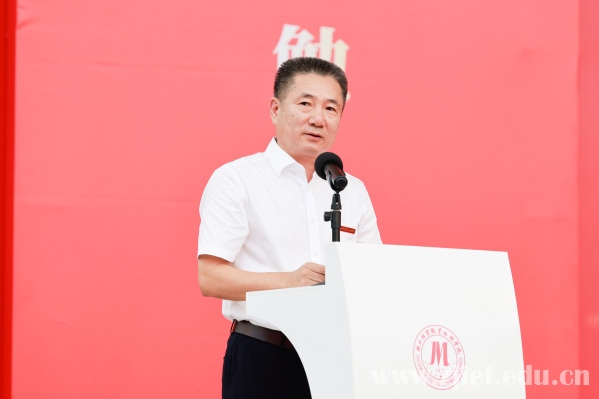 党委书记劳赐铭以“精技笃行砺匠心,让青春在以技报国中绽放光彩”为题,在开学典礼上为全体新生讲授了一堂深刻而富有感召力的“大学第一课”。他紧密结合党的二十大对职业教育发展的战略指引,深刻阐述了在当前国家大力发展新质生产力的时代背景下,高素质技术技能人才所承载的历史使命与发展机遇。他强调“同学们选择经贸学院,就是选择了技能成才、技能报国之路”,并勉励同学们要坚定“技能成才、技能报国”理想信念,弘扬工匠精神,做到精进技能、知行合一、持之以恒,主动融入学校、融入国家发展,让青春在以技报国中绽放光彩。劳赐铭还以《牢固树立正确的宗教观》为题,通过视频录播课形式向全体新生传递树立正确宗教观的重要性与必要性,帮助广大学生更加全面地认识世界形势和现实国情,深刻理解新形势下的国家安全观,提高自身风险防范能力。